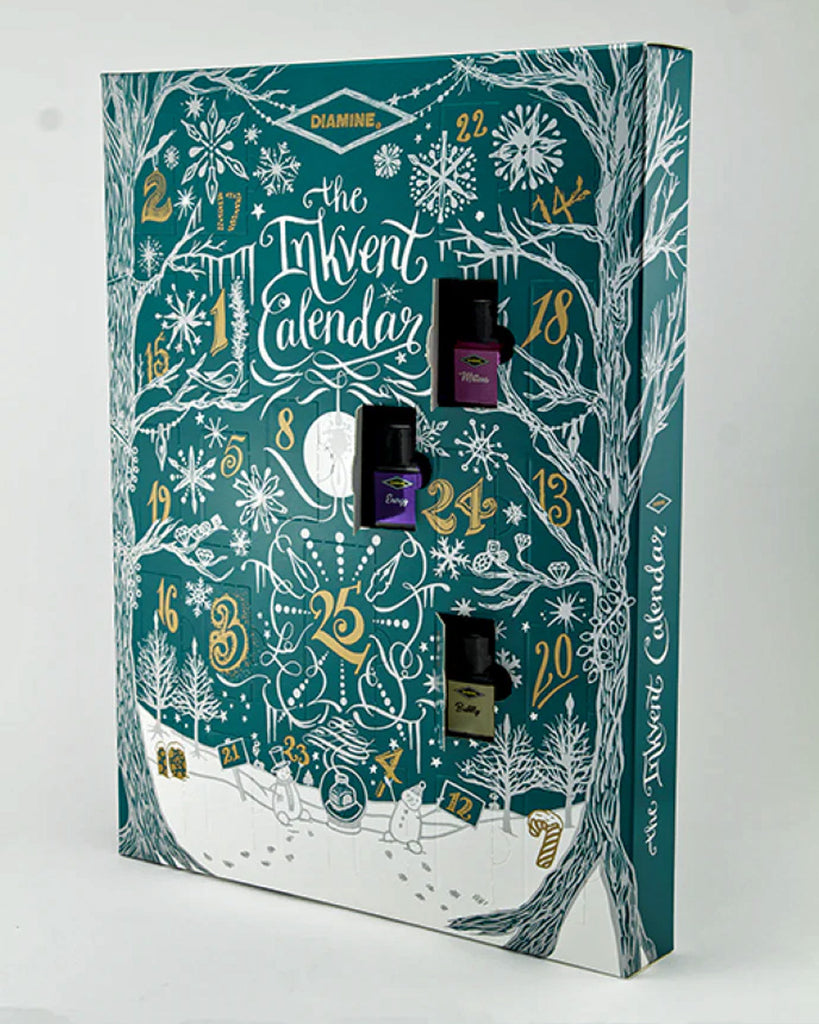 Diamine have returned their extremely popular INKVENT advent calendar for 2025, this time with beautiful TEAL outer packaging and 25 new colours of ink inside!